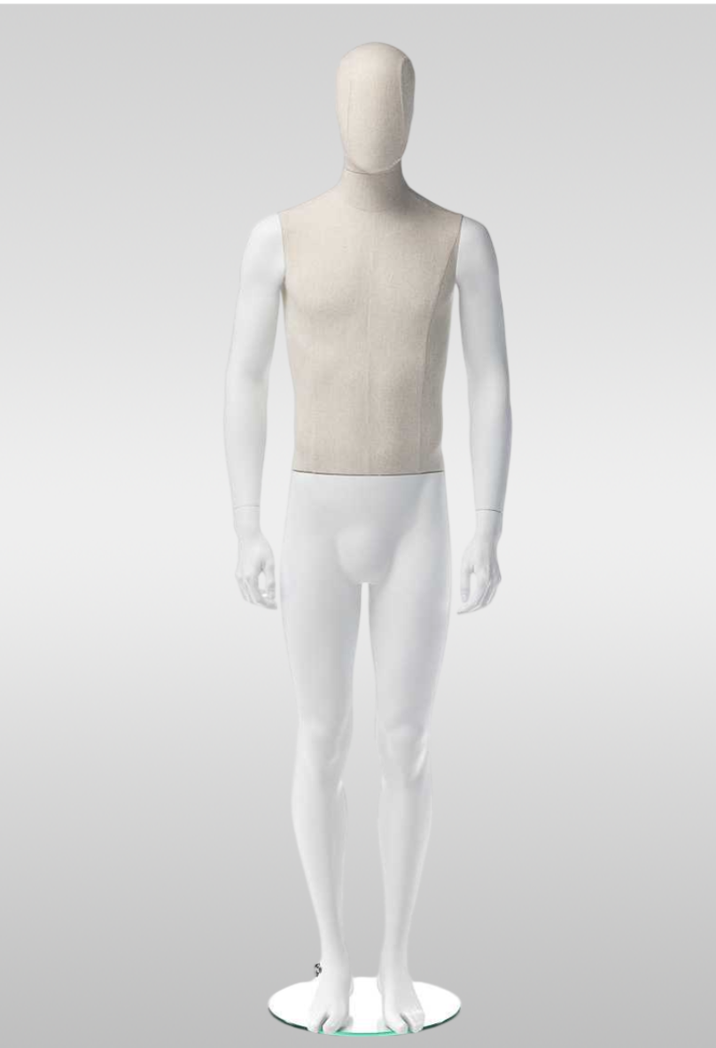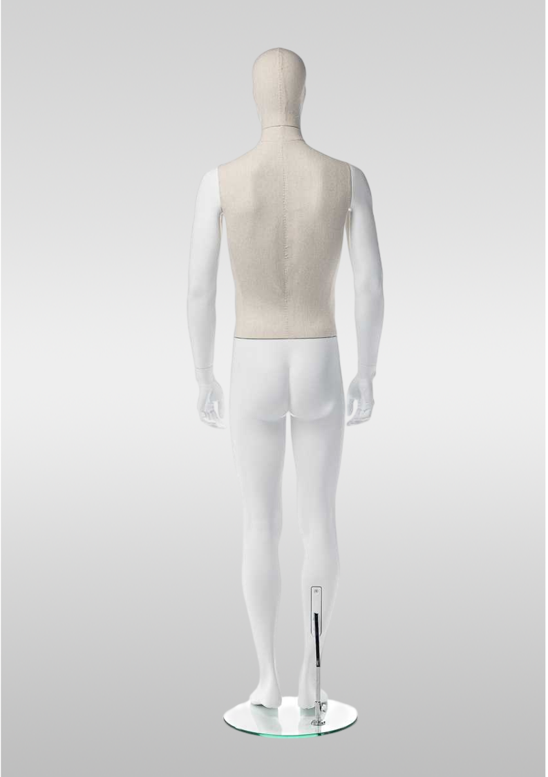 Мужской абстрактный манекен Дакс— для профессиональной демонстрации одежды. Прямая поза обеспечивает аккуратную посадку изделий, включая многослойные образы. Поворотная и съёмная голова упрощает переодевание, возможна установка без головы.