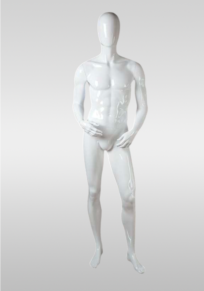 Мужской манекен в полный рост абстрактный со стеклянной подставкой — стильное решение для оформления витрин и магазинов одежды. Универсальный абстрактный дизайн без черт лица подходит для демонстрации классической, повседневной и спортивной одежды.