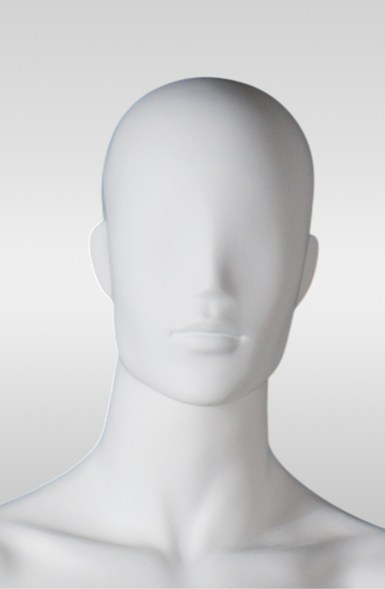 Мужской абстрактный манекен Mark— для профессиональной демонстрации одежды. Прямая поза обеспечивает аккуратную посадку изделий, включая многослойные образы. Поворотная и съёмная голова упрощает переодевание, возможна установка без головы.