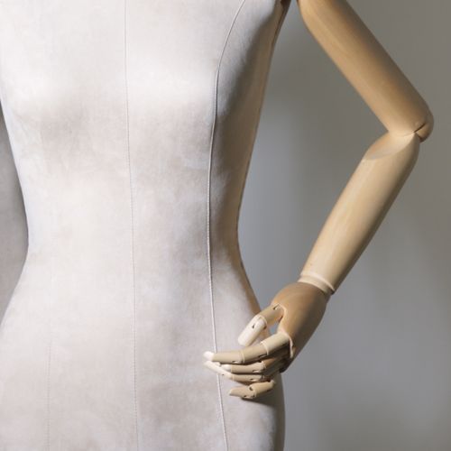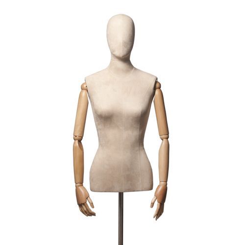 Женский манекен торс, обтянутый вельветом, с подвижными деревянными руками — идеальное решение для магазинов одежды, шоурумов, музеев и витринных экспозиций. Элегантный винтажный образ подчёркивает посадку одежды и аксессуаров, подходит для классических и дизайнерских коллекций. Манекен регулируется по высоте, стойка деревянная тренога.