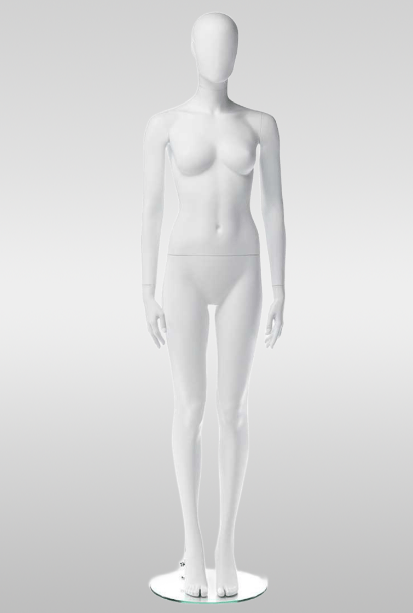 Женский абстрактный манекен ABF-1 — для профессиональной демонстрации одежды. Прямая поза обеспечивает аккуратную посадку изделий, включая многослойные образы. Поворотная и съёмная голова упрощает переодевание, возможна установка без головы (есть заглушка для шеи).
