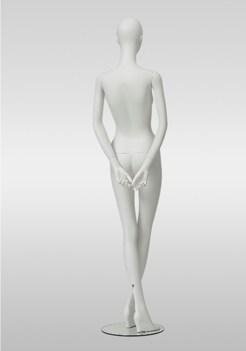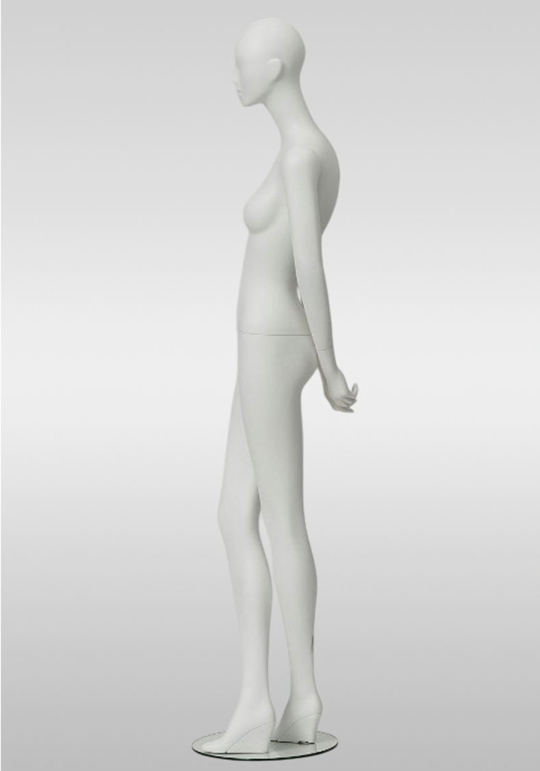 Женский манекен белый матовый на танкетке со стеклянной подставкой — современное решение для оформления витрин и магазинов одежды. Элегантная поза на каблуке подчёркивает силуэт и делает демонстрацию платьев, костюмов и fashion-коллекций более эффектной.