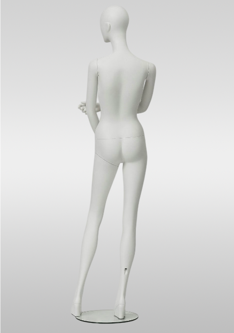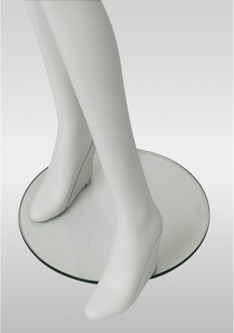 Женский манекен белый матовый на танкетке со стеклянной подставкой — современное решение для оформления витрин и магазинов одежды. Элегантная поза на каблуке подчёркивает силуэт и делает демонстрацию платьев, костюмов и fashion-коллекций более эффектной.